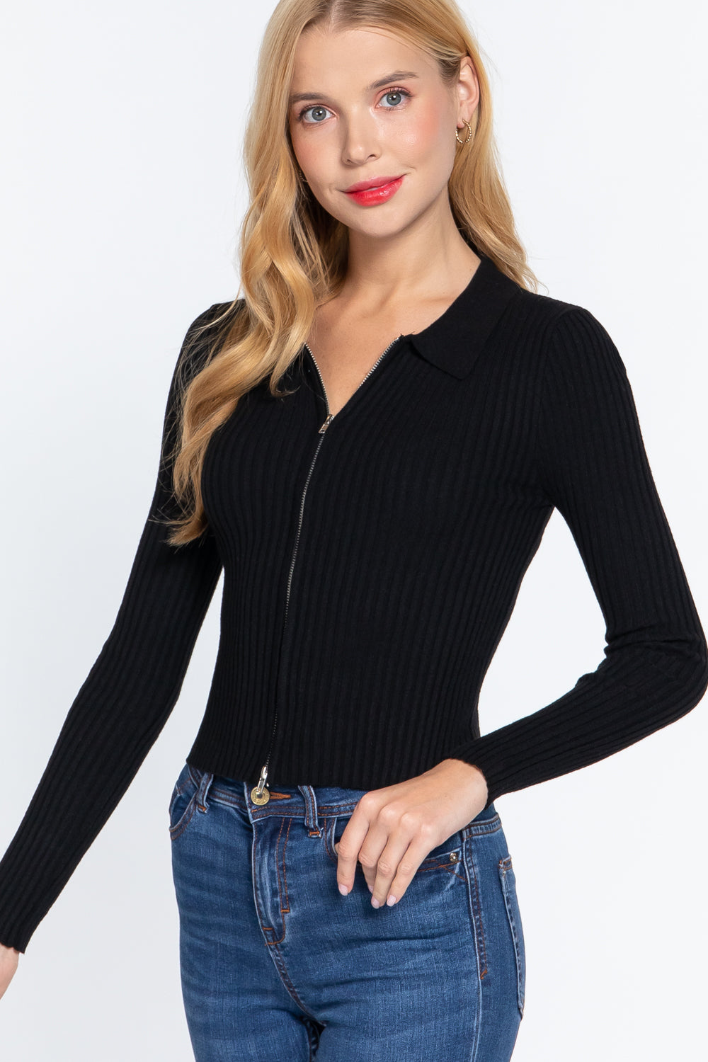 Don't miss out on the chance to enhance your winter style. Add the Notched Collar Zippered Sweater in Black to your cart today and indulge in the perfect blend of fashion and comfort!
